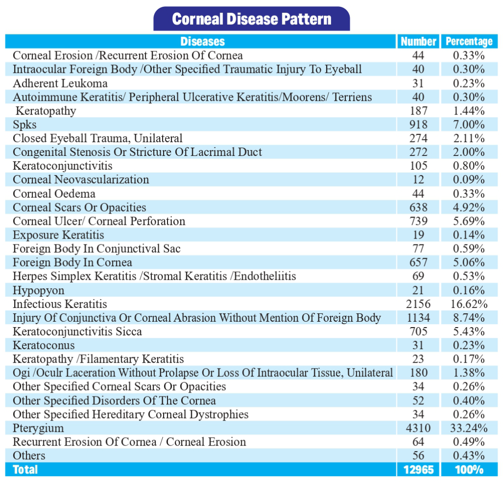 The Cornea Department at Bharatpur Eye Hospital is one of the most well-established subspecialty units within the institution. Given that corneal diseases remain a leading cause of blindness in developing countries, the department has been instrumental in providing specialized care not only to patients from Chitwan, but also from neighboring districts. The department is equipped with a comprehensive range of diagnostic and therapeutic instruments essential for the management of ocular surface and corneal disorders. Since 2017, Bharatpur Eye Hospital has operated a cornea collection center and offers corneal transplantation services, significantly enhancing its capacity to restore sight. During the fiscal year 2024-25, the department registered a total of 3,565 patients. The most commonly encountered conditions included pterygium, keratitis, corneal ulcers, and corneal opacities. Additionally, 31 patients were diagnosed with keratoconus, reflecting the department’s diagnostic depth. A total of 518 cornea-related surgeries were performed during the year, of these, 451 patients underwent pterygium excision with conjunctival autografting, while 22 patients received corneal transplants, marking a significant contribution to sight restoration efforts in the region.