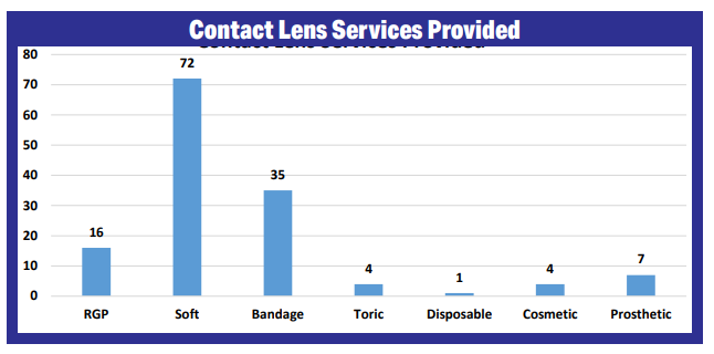A total of 139 patients took the contact lens service from the clinic in this year. The majority of the patients were prescribed soft contact lenses.