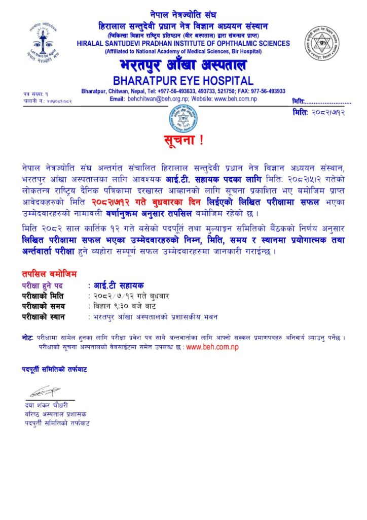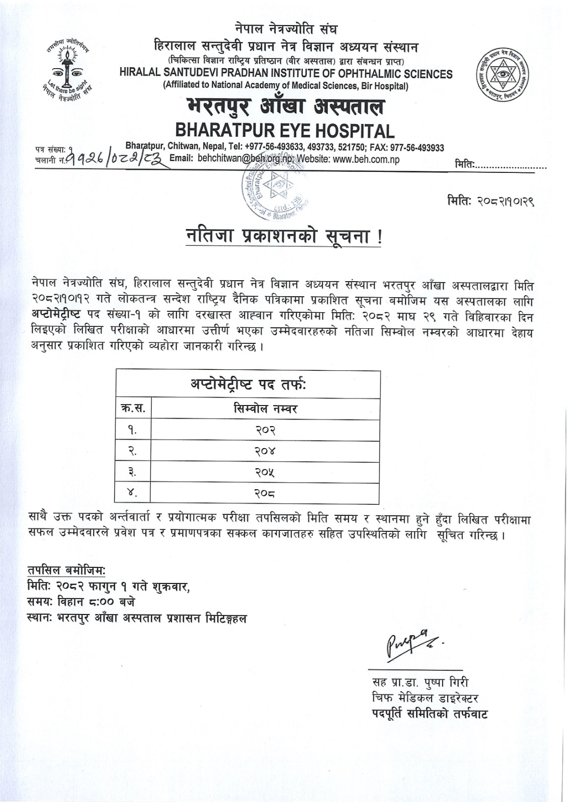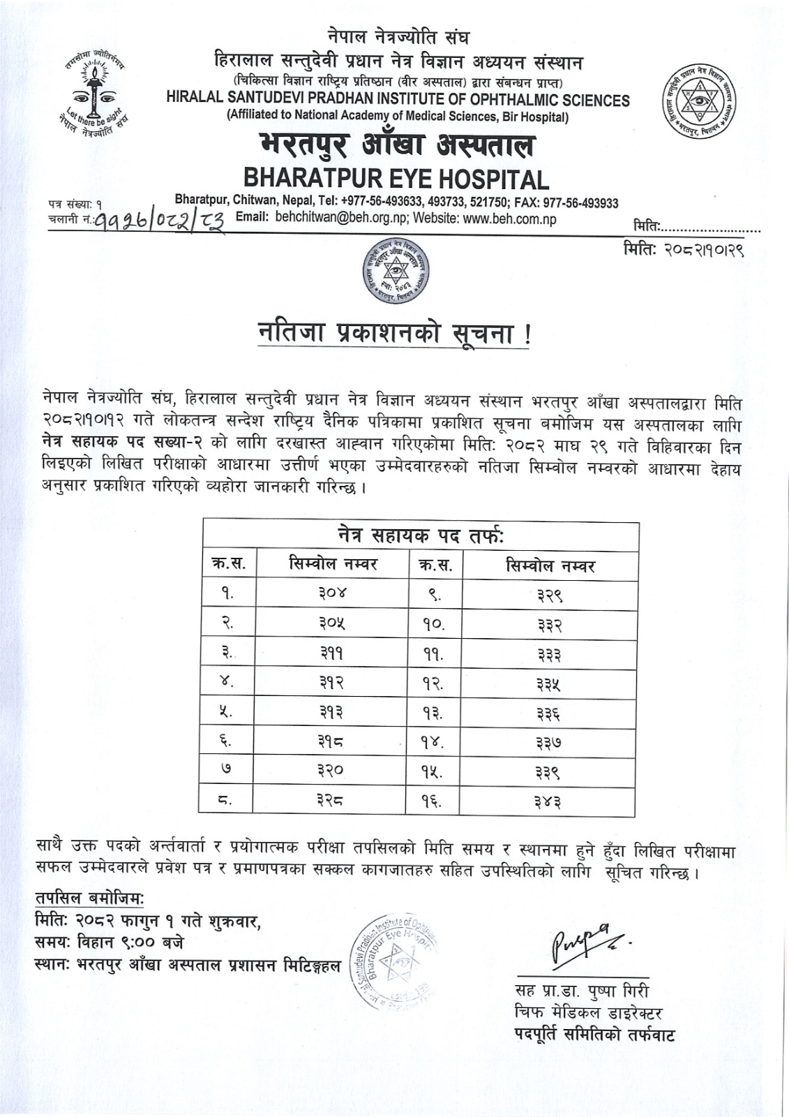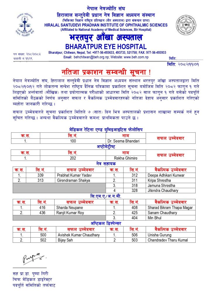 Result Notice on General Ophthalmologist, Medical Officer Interview Examination :03/06/2025
