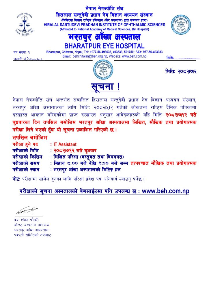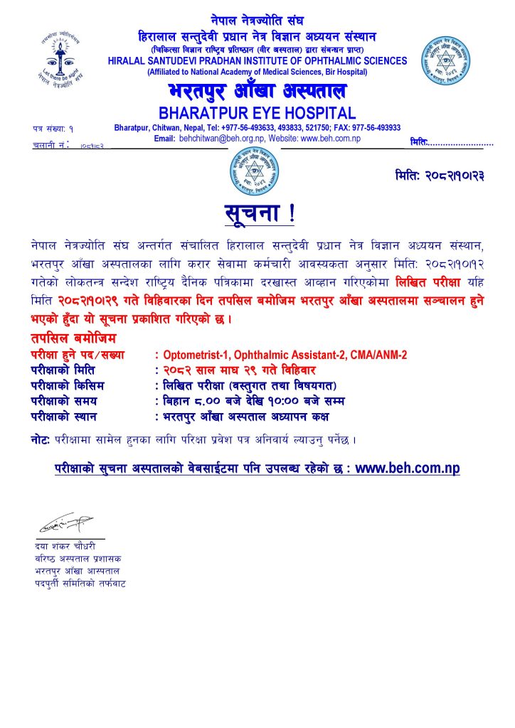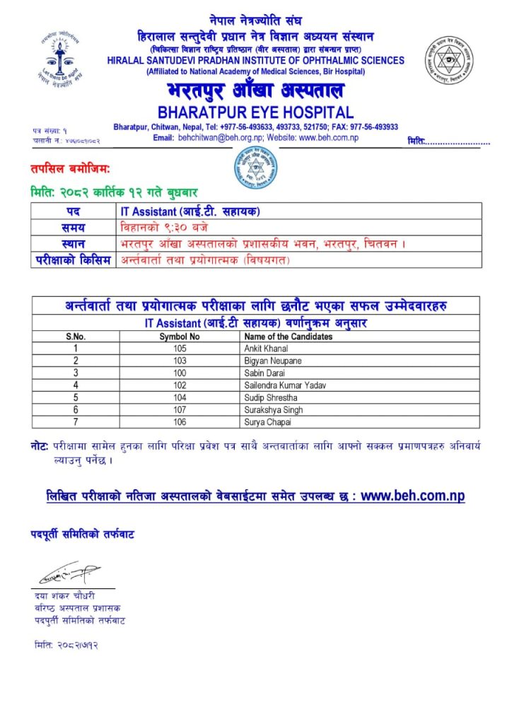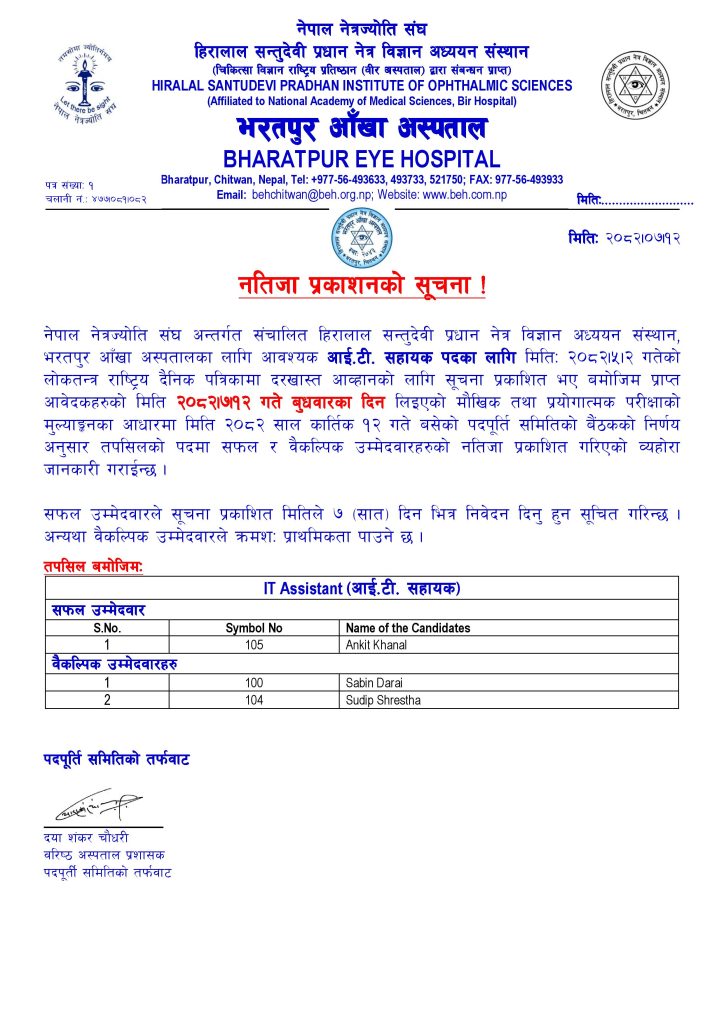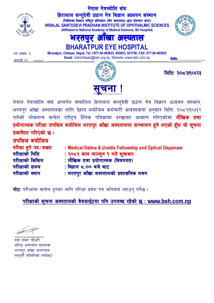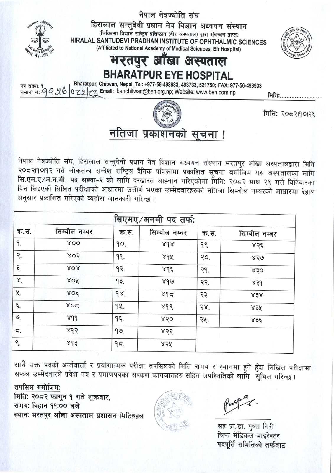 Result Notice on General Ophthalmologist, Medical Officer Interview Examination :03/06/2025